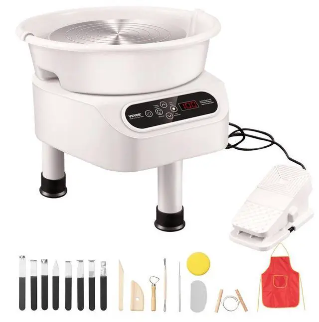 VEVOR Pottery Wheel, 10 inch Pottery Forming Machine, Direct Drive Ceramic Wheel with 3 Support Legs for DIY Art Craft, 350W Electric Wheel for Pottery with Foot Pedal and LCD Touch Screen, White