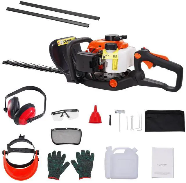 VEVOR 23.2-inch 26CC 2 Cycle Gas Hedge Trimmer, Gas Powered Handheld Hedge Trimmer with Dual Sided Dual Action Blade, 180° Adjustable Trimmer Head, Suitable for Trimming Shrubs, Low Bushes