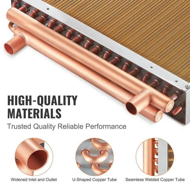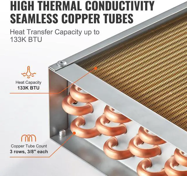 VEVOR Heat Exchanger Water to Air, 18"x 20" with 3-Row 3/8" Copper Ports, 242 Aluminum Fins Heat Exchanger for Outdoor Wood Furnaces, Residential Heating and Cooling, and Forced Air Heating