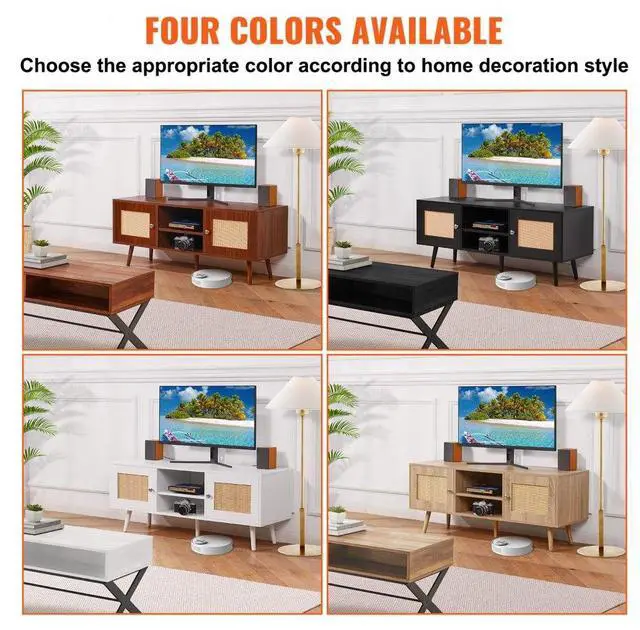 VEVOR Rattan TV Stand, Boho TV Cabinet for 55 inch TV, Mid Century Modern TV Stand, Rattan TV Console with Adjustable Shelfs for Living Room, Media Room, White
