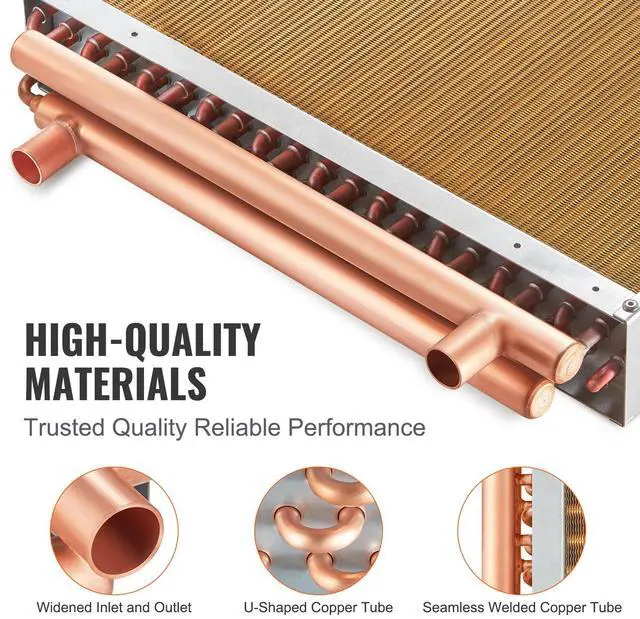 VEVOR Heat Exchanger Water to Air, 20"x 20" with 3-Row 3/8" Copper Ports, 242 Aluminum Fins Heat Exchanger for Outdoor Wood Furnaces, Residential Heating and Cooling, and Forced Air Heating