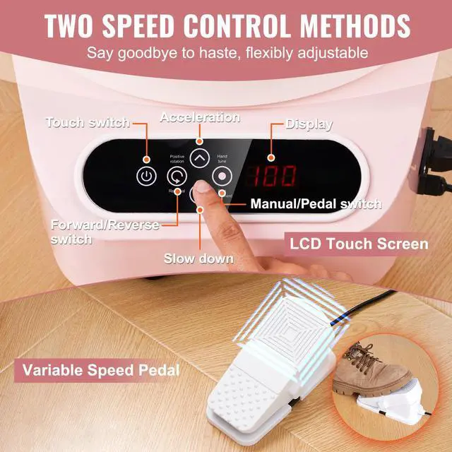 Color: Pink,Item Model Number: YT-10,Max Clay Capacity: 11 lbs / 5 kg,Speed Control: Touch Screen + Foot Pedal,Appearance: Three Support Feet,Speed Range: 50-300 RPM,Max Load Power: 450 W