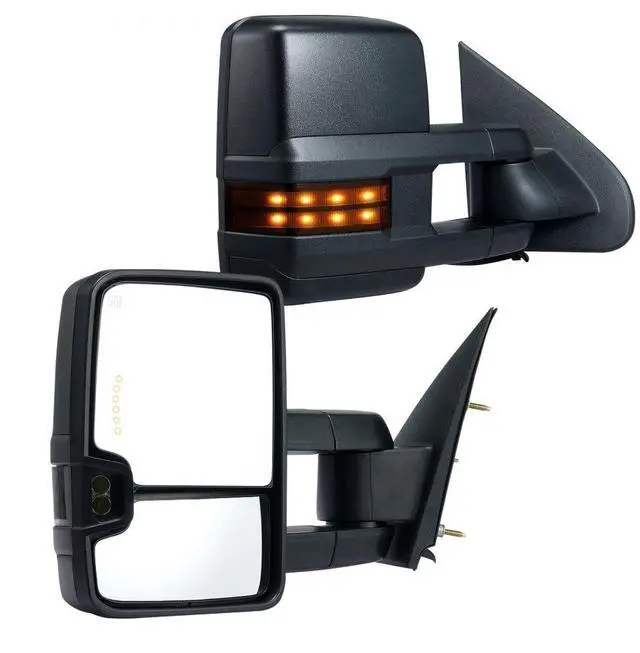 VEVOR Towing Mirrors, Left & Right Pair Set for Chevrolet Silverado (2003-2007)/GMC/Cadillac, Power Heated with Signal Light & LED Driving Light, Manual Telescoping Folding, and Heating Defrost, Black