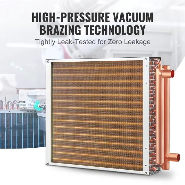 • VEVOR Heat Exchanger Water to Air, 16"x 16" with 3-Row 3/8" Copper Ports, 193 Aluminum Fins Heat Exchanger for Outdoor Wood Furnaces, Residential Heating and Cooling, and Forced Air Heating
