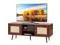 VEVOR Rattan TV Stand, Boho TV Cabinet for 55 inch TV, Mid Century Modern TV Stand, Rattan TV Console with Adjustable Shelfs for Living Room, Media Room, Walnut