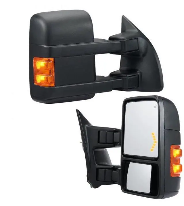 VEVOR Towing Mirrors, Left & Right Pair Set for 1999-2007 Ford F250 F350 F450 F550, Power Heated with Signal Light, Plane & Convex Glass, Manual Controlling Telescoping Folding, Heating Defrost, Black