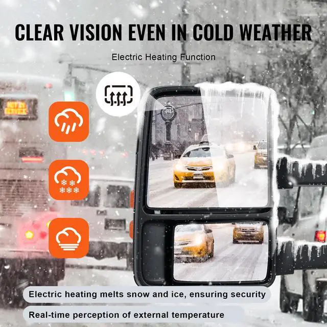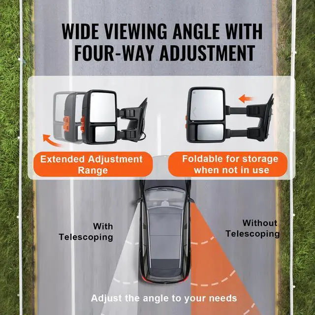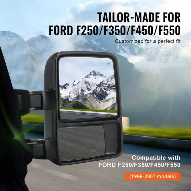 VEVOR Towing Mirrors, Left & Right Pair Set for 1999-2007 Ford F250 F350 F450 F550, Power Heated with Signal Light, Plane & Convex Glass, Manual Controlling Telescoping Folding, Heating Defrost, Black