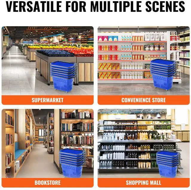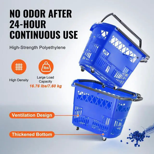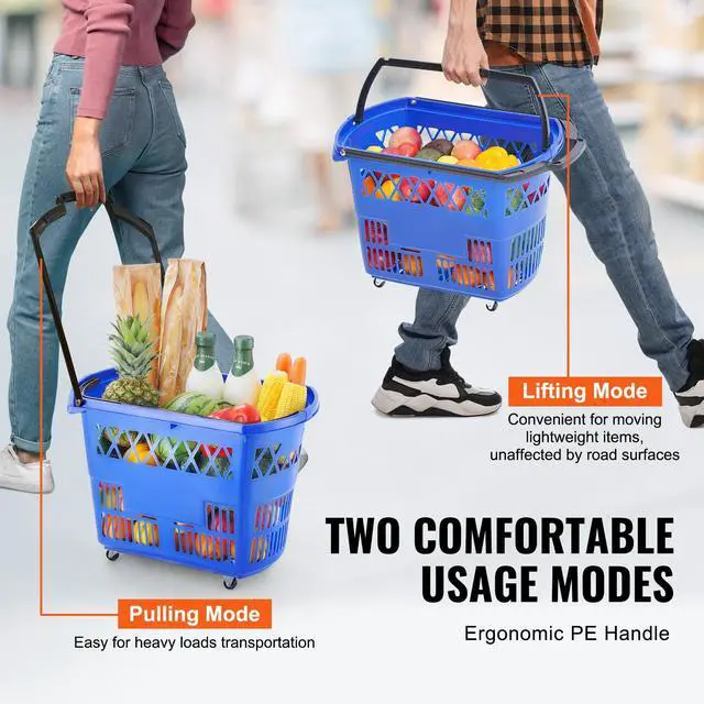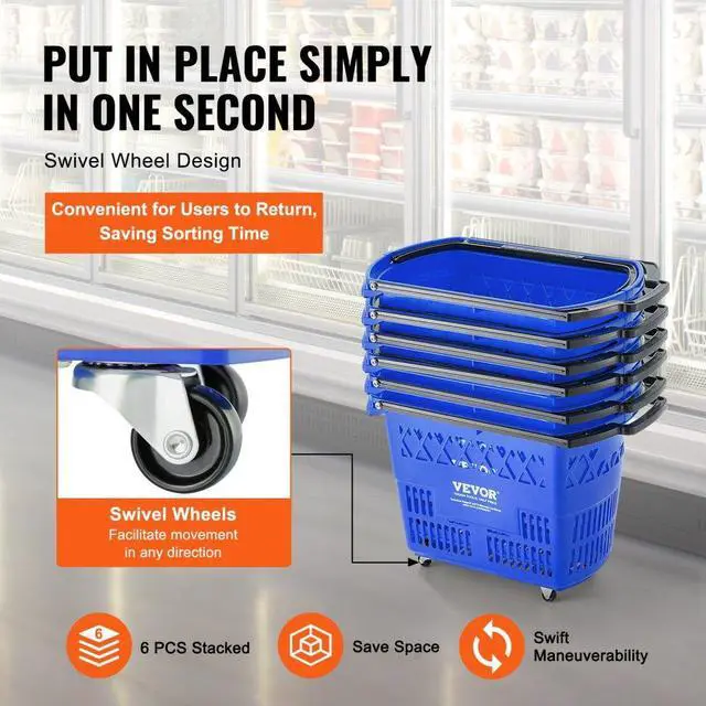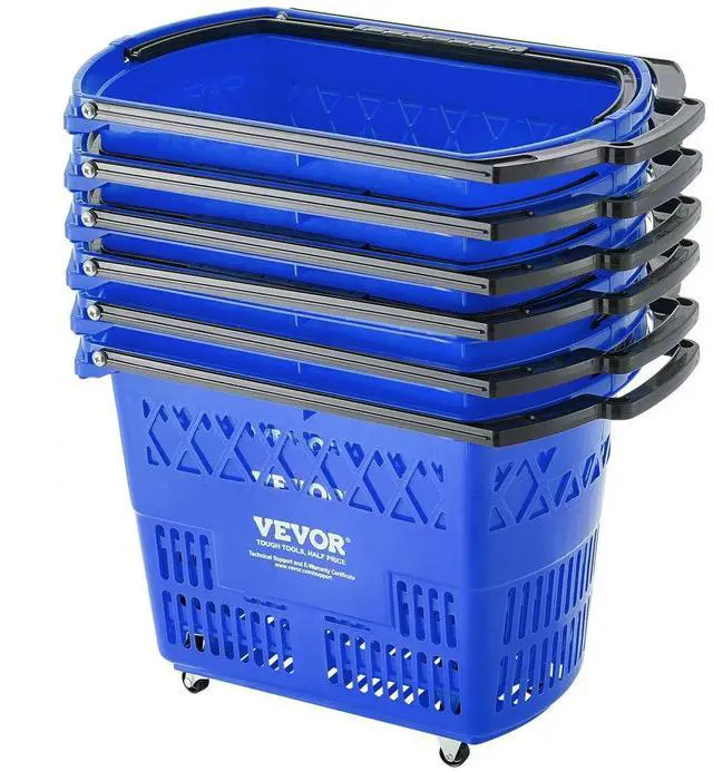 VEVOR Plastic Rolling Shopping Trolley Basket On Wheels 6PCS 39L with Handle