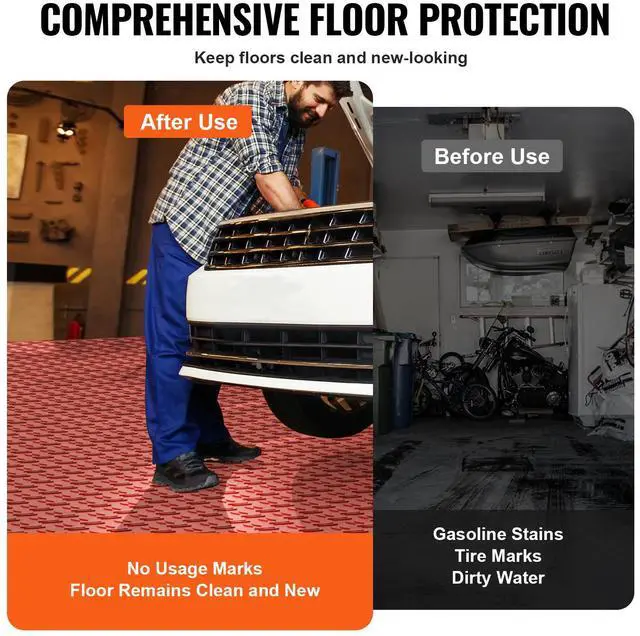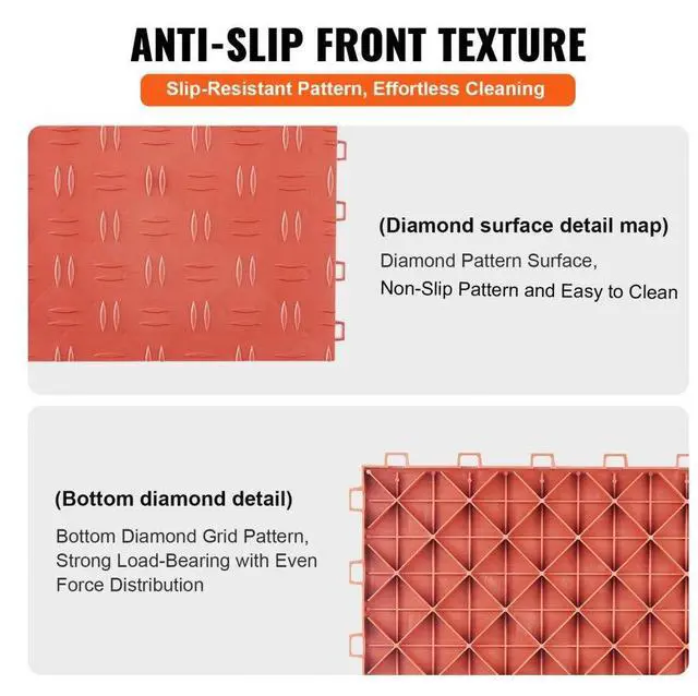 VEVOR Garage Tiles Interlocking, 12 x 12 x 0.53 inch 25 Pack Garage Floor Covering Tiles, Non-Slip Double-Sided Texture Garage Flooring Tiles, for Garages, Basements, Repair Shops, Red