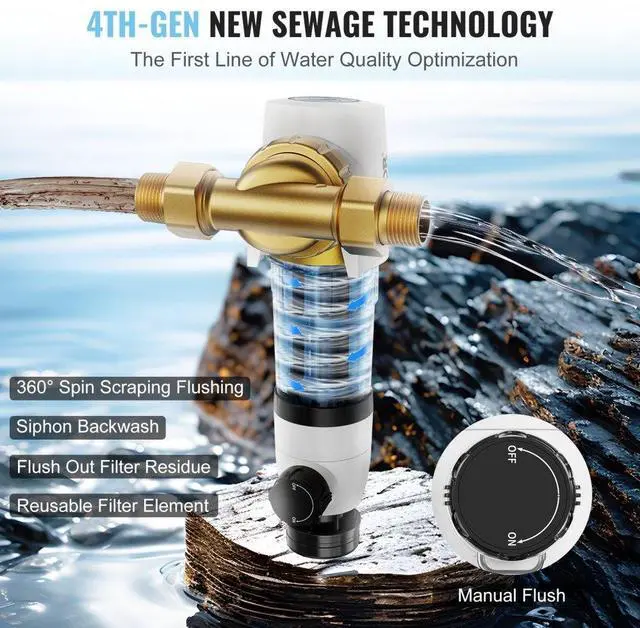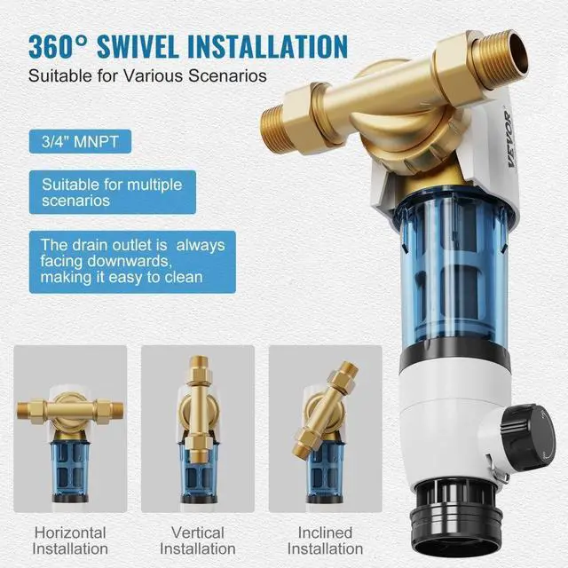 VEVOR Spin Down Filter, 40 Micron Whole House Sediment Filter for Well Water, 3/4" MNPT, 4 T/H High Flow Rate, for Whole House Water Filtration Systems, Well Water Sediment Filter
