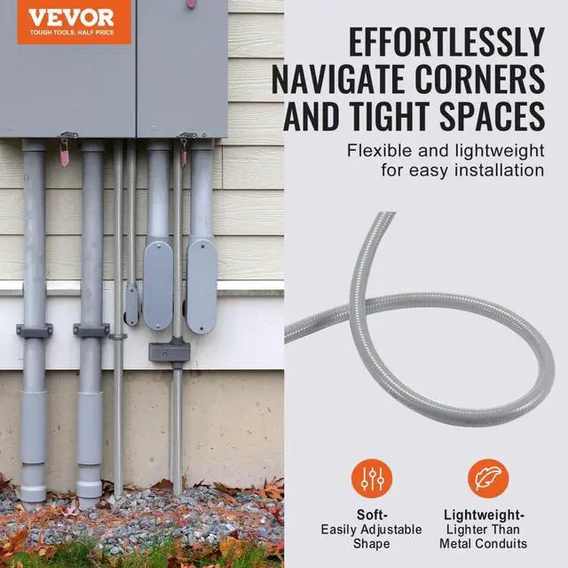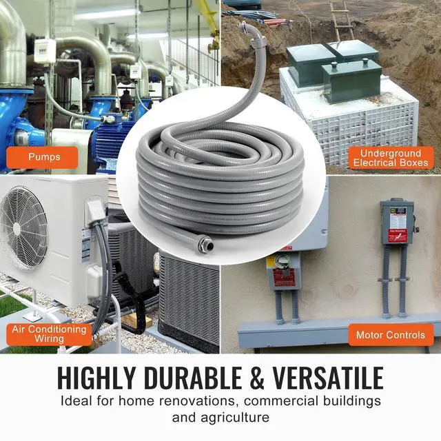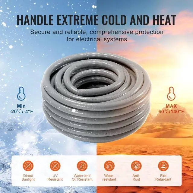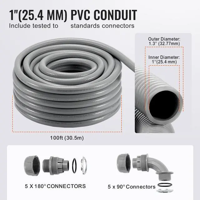 VEVOR 1-Inch Flexible Electrical Conduit, 100 ft, PVC Liquid-Tight Conduit Non-Metallic with 5 Straight and 5 90-Degree Conduit Connector Fittings, for Air Conditioning Motor Controller Pump, IP65