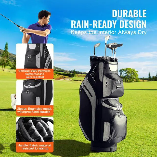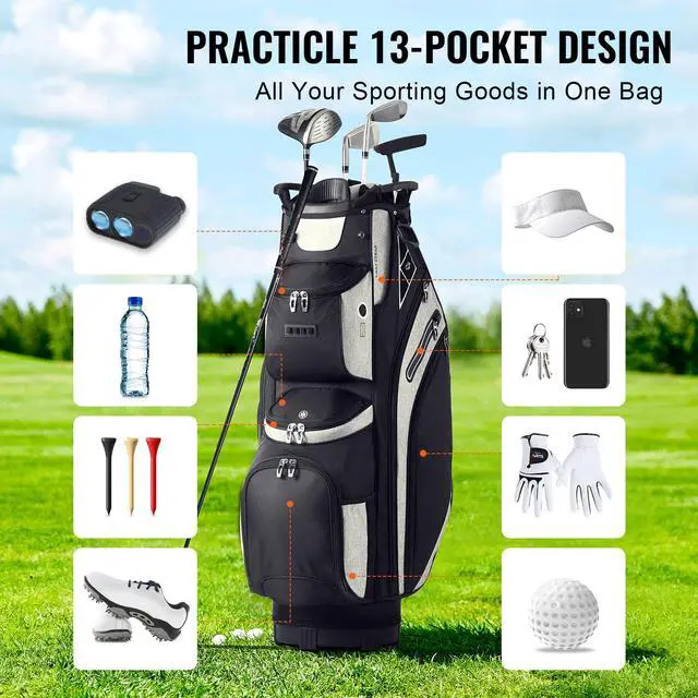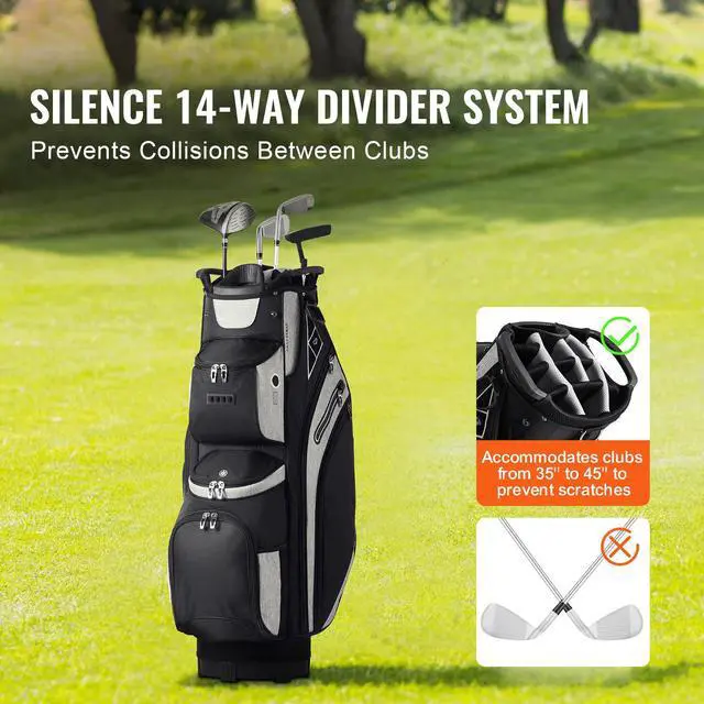 VEVOR Golf Cart Bag with 14 Way Organizer Divider Top, 36 13 Pockets Premium Cart Bag, Durable Golf Bags with Handles & Dust Cover & Detachable Straps for Men & Women, Black Color-Block