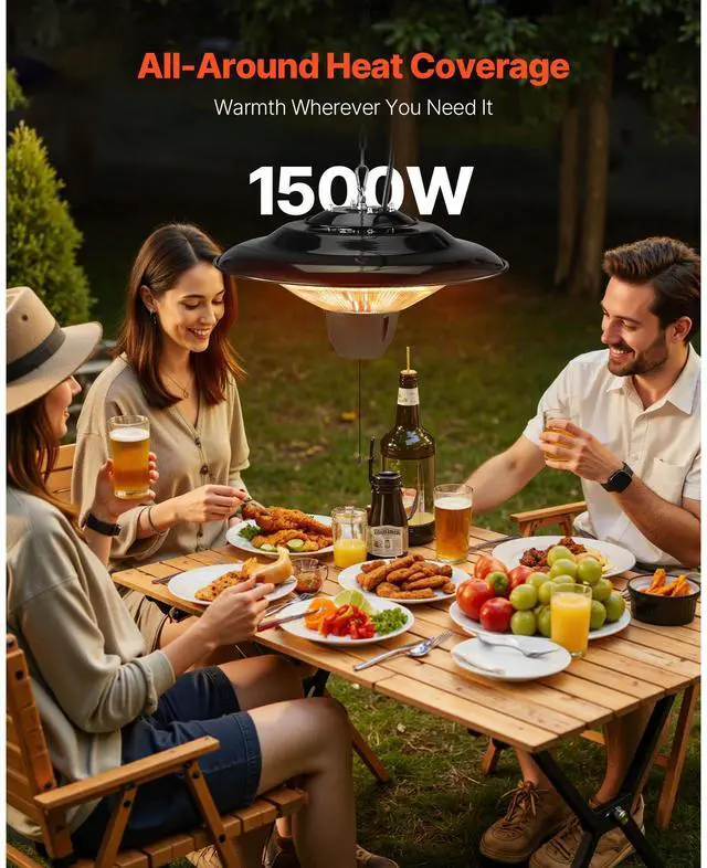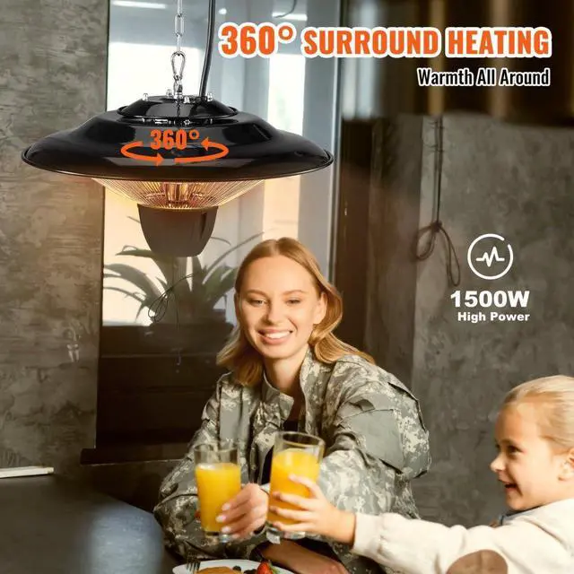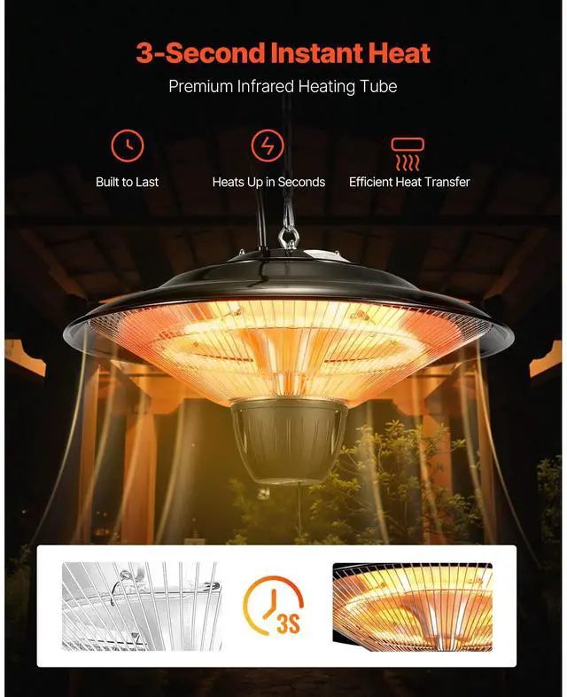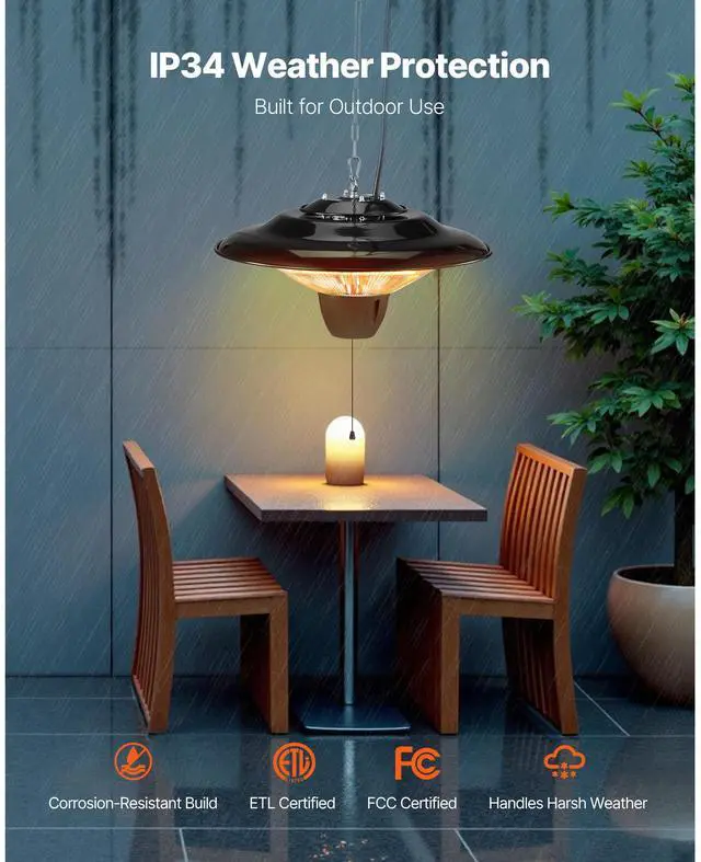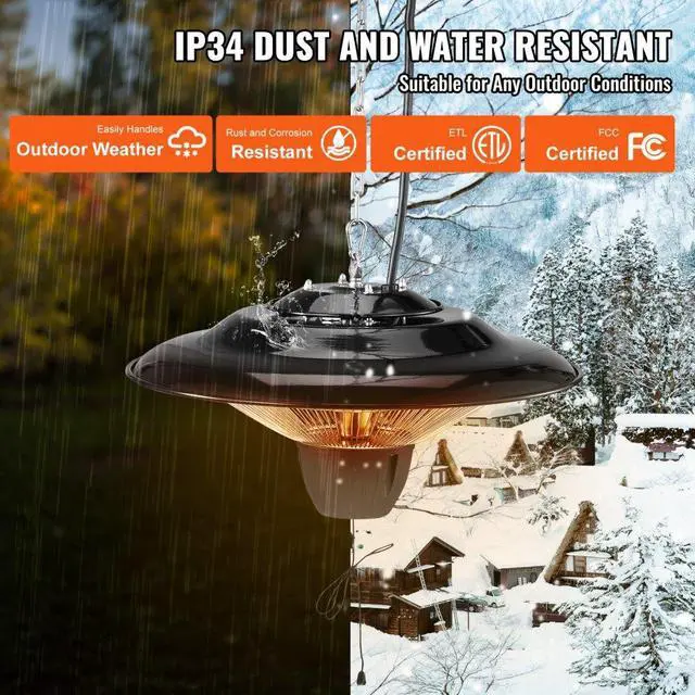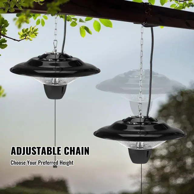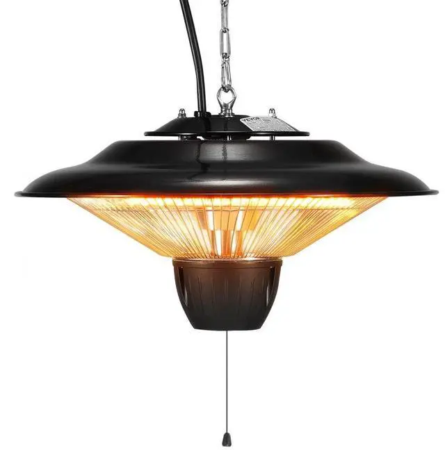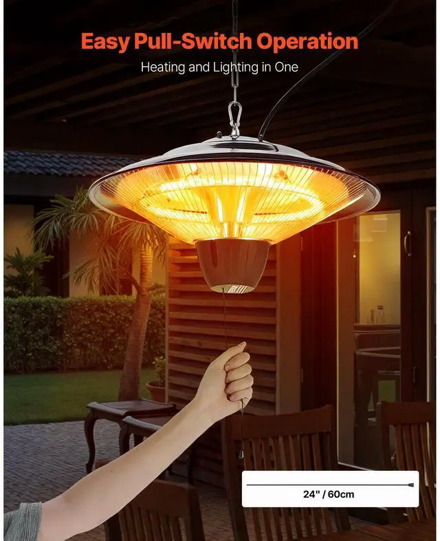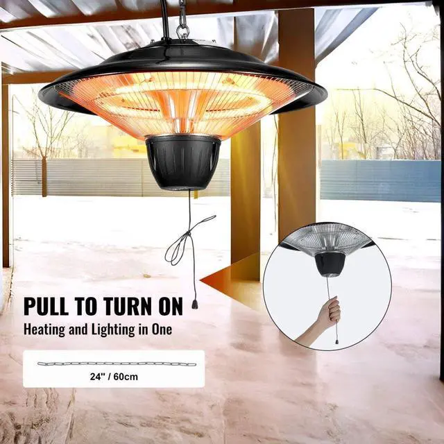 VEVOR Hanging Patio Heater, 1500W Outdoor/Indoor Electric Space Infrared Heater, IP34 Protection Ceiling Heater with 23.6 inch Pull Cord & 20 inch Adjustable Chain, for Porch,Patio,Dining Room,Studio