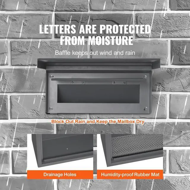 VEVOR Through The Wall Drop Box, Heavy Duty Steel Through the Wall Mailbox with 2.8-7.9" 13" Combination Lock, 12.5x6.3x16.9" Mail Drop Box, Dark Gray