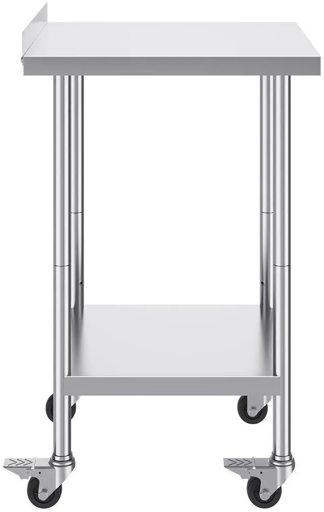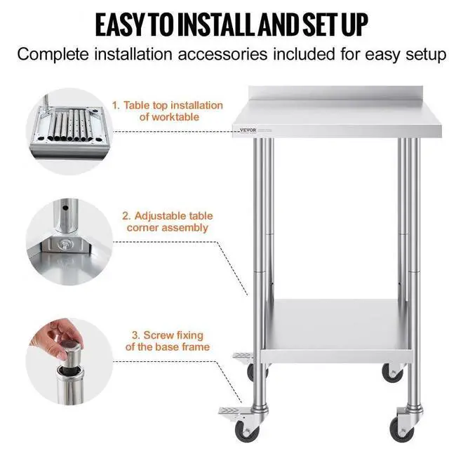 VEVOR 24 x 24 x 40 Inch Stainless Steel Work Table, Commercial Food Prep Worktable with Casters, Heavy Duty Prep Worktable, Metal Work Table with Adjustable Height for Restaurant, Home and Hotel