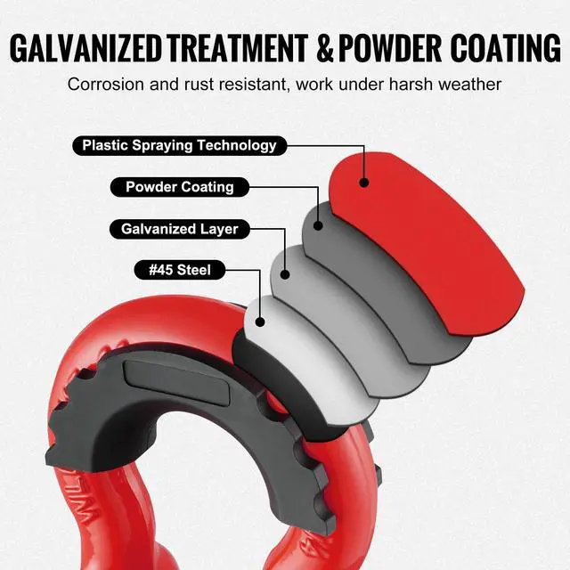 VEVOR 3/4" D-Ring Shackle, 2 Pack Alloy Steel Shackles 62832 lbs (28.5 Ton) Break Strength with 7/8" Screw Pin, Isolators & Washers, Heavy Duty Off Road Vehicle Recovery Shackle for Jeep Truck, Red