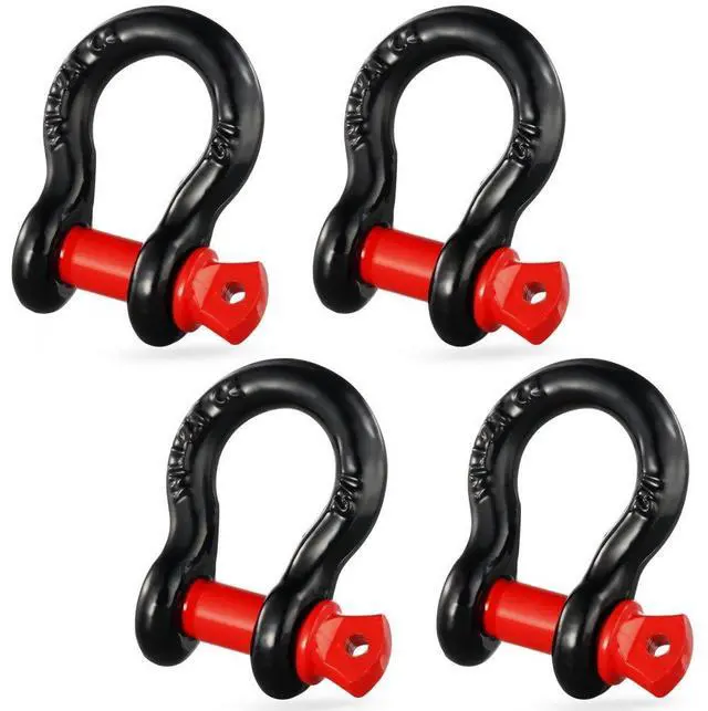 • VEVOR 1/2" D-Ring Shackle, 4 Pack Alloy Steel Shackles 17637 lbs (8 Ton) Break Strength with 5/8" Screw Pin, Heavy Duty Off Road Vehicle Recovery Shackle, Towing Accessories for Jeep Truck, Black