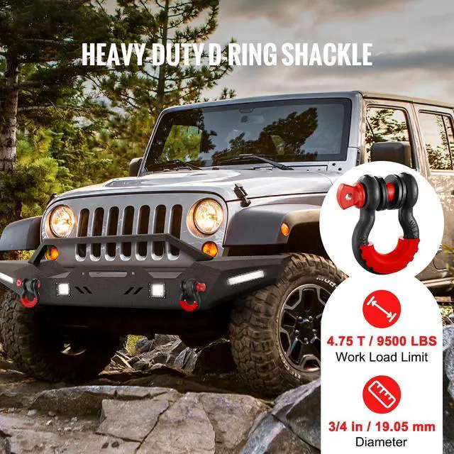 VEVOR 3/4" D-Ring Shackle, 2 Pack Alloy Steel Shackles 62832 lbs (28.5 Ton) Break Strength with 7/8" Screw Pin, Isolators & Washers, Heavy Duty Off Road Vehicle Recovery Shackle for Jeep Truck, Black