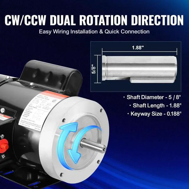 VEVOR 0.75HP Electric Motor 1725 rpm, AC 115V/230V, 56C Frame, Air Compressor Motor Single Phase, 5/8" Keyed Shaft, CW/CCW Rotation for Agricultural Machinery and General Equipment