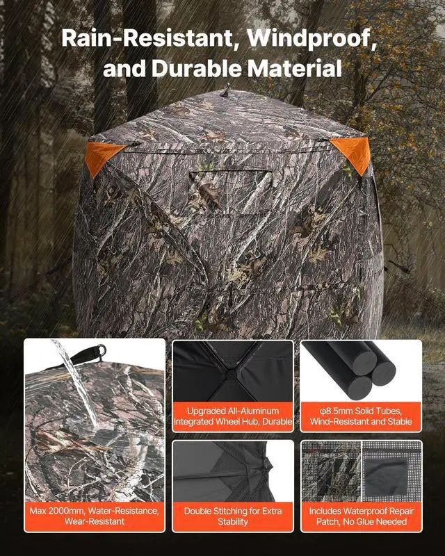 VEVOR Hunting Blind, 270° See Through Ground Blind, 1-2 Person Pop Up Deer Blind for Hunting with Carrying Bag, Portable Resilient Hunting Tent, 3 Horizontal Windows for Turkey and Deer Hunting