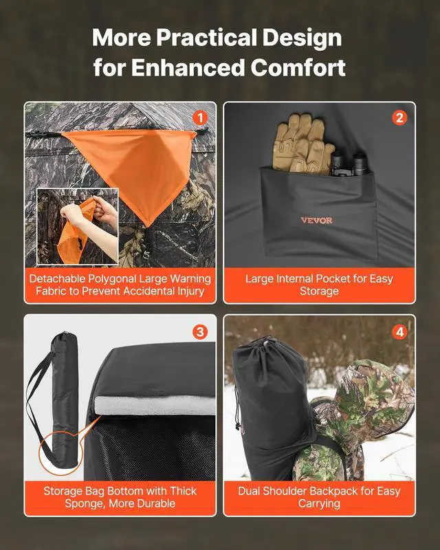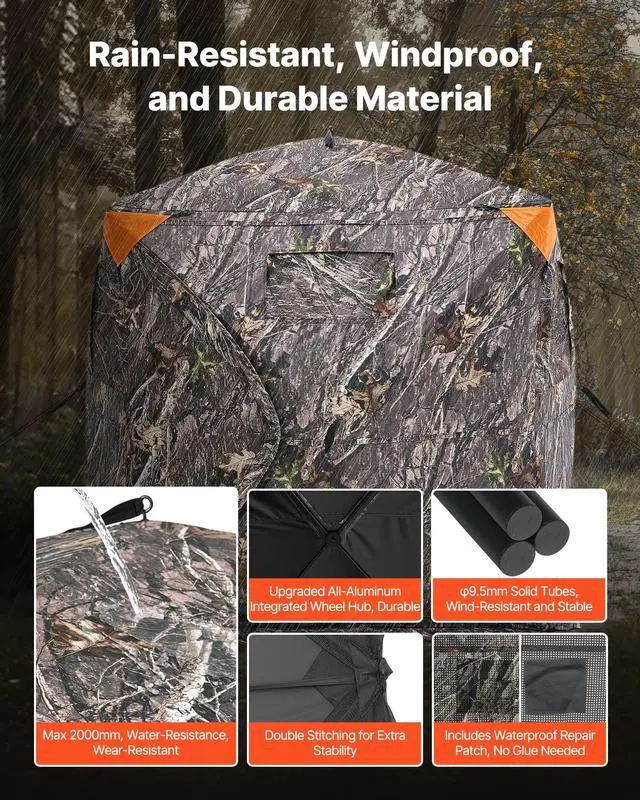 VEVOR Hunting Blind, 270° See Through Ground Blind, 2-3 Person Pop Up Deer Blind for Hunting with Carrying Bag, Portable Resilient Hunting Tent, 3 Horizontal Windows for Turkey and Deer Hunting