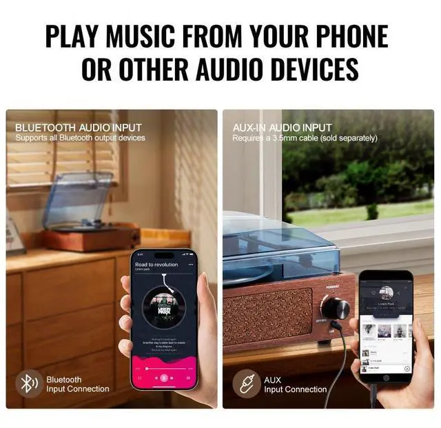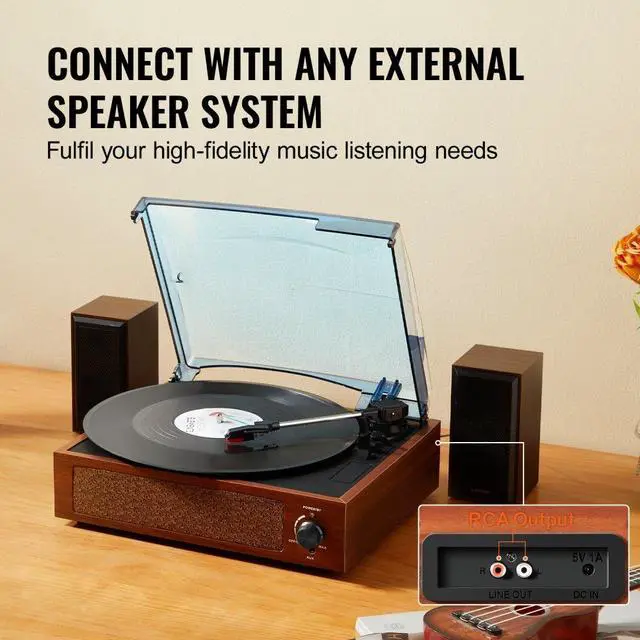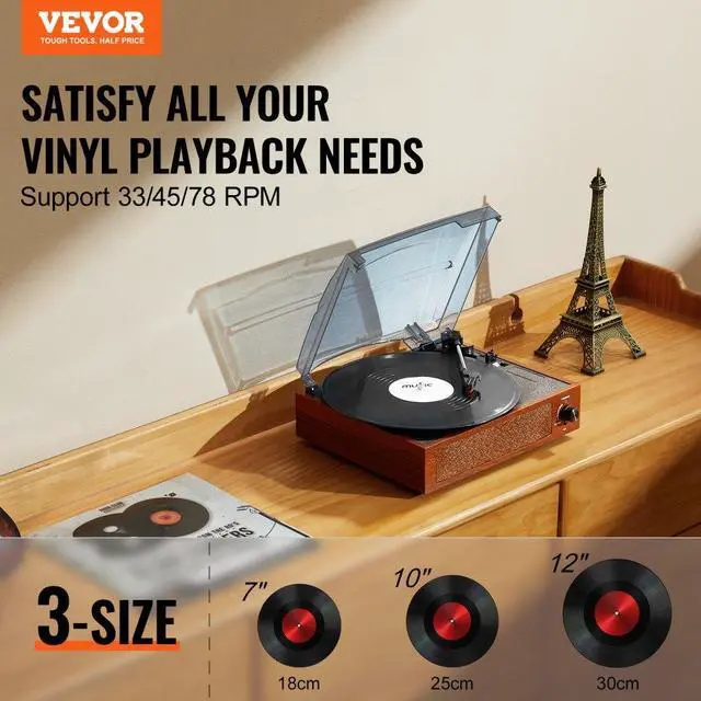 VEVOR Vinyl Record Player, 3-Speed, Belt Driven Turntable Player with Built-in 10W Stereo Speakers Magnetic Cartridge, Support 33/45/78 RPM Bluetooth Aux in RCA Output, for 7/10 /12 in Vinyl Records