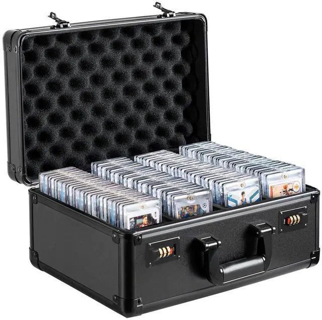 VEVOR Graded Card Storage Box, 4 Slots, Graded Sports Cards Holder Carrying Case with Coded Lock Foam Dividers, for 120 PSA Graded Cards 84 BGS Cards 96 SGC Cards 428 Top Loaders or 999+ Loose Cards