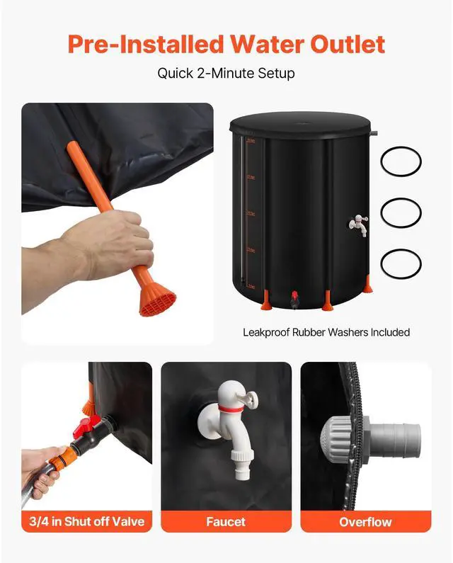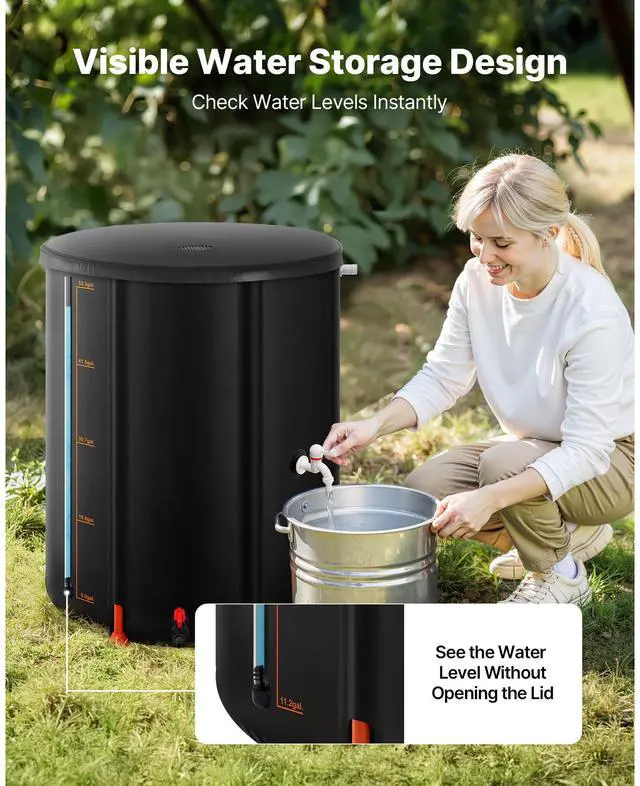 VEVOR Collapsible Rain Barrel 53 Gal Rain Catcher with Spigots and Overflow Kit