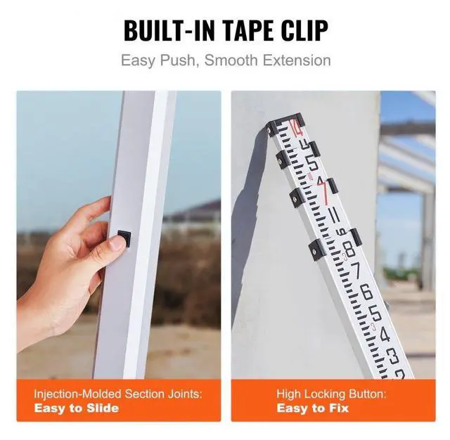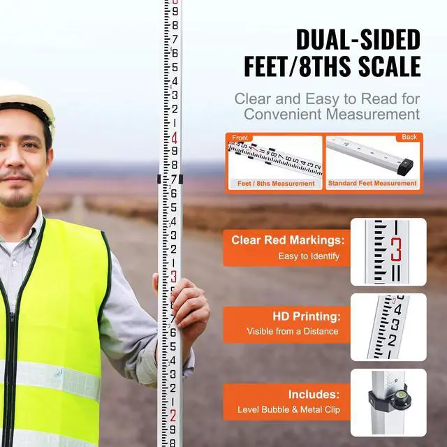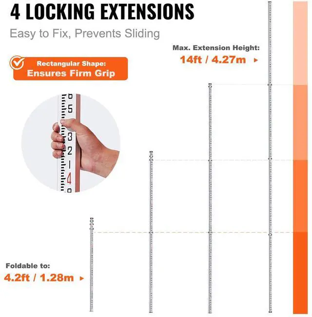 VEVOR Measuring Rod 14-Feet/8ths 4 Sections Telescopic Grade Rod 1/8in w/ Bag