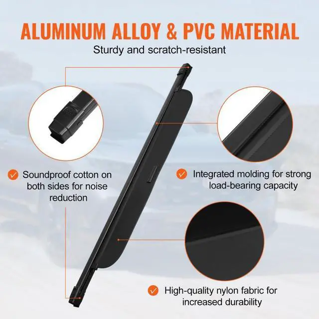 Main Materials: Nylon + PVC + Aluminum Alloy,Product Color: Black,Retractable Curtain Max Expansion Length: 26.57 in / 675 mm,Item Model Number: 23-24CRV,Product Weight: 3.53 lbs / 1.6 kg,End Cap Dimensions: WxH: 1.57 x 1.65 in / 40 x 42 mm,Product Dimensions: 52.76 x 7.09 x 1.83 in / 1340 x 180 x 46.5 mm,Compatible Vehicle Model: Honda CRV OEM 2023-2024