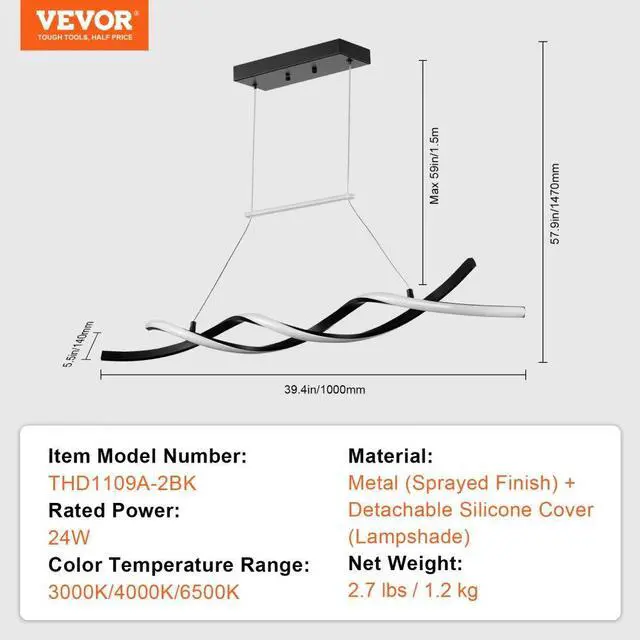 Item Model Number: THD1109A-2BK,Rated Power: 24W,Color Temperature Range: 3000K/4000K/6500K,Material: Metal (Sprayed Finish) + Detachable Silicone Cover (Lampshade),Net Weight: 2.7 lbs / 1.2 kg