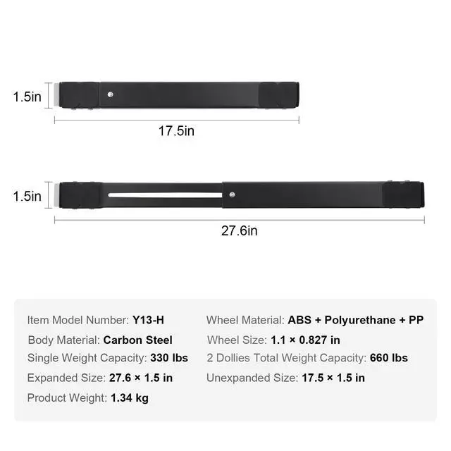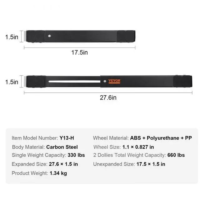 2 Dollies Total Weight Capacity: 660 lbs/300 kg