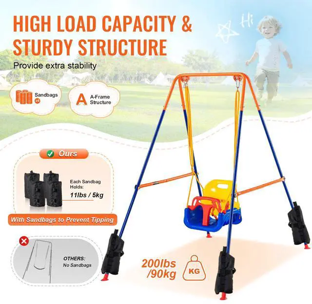VEVOR Swing Sets for Backyard 3 in 1 Toddler Swing Set with 4 Sandbags Foldable