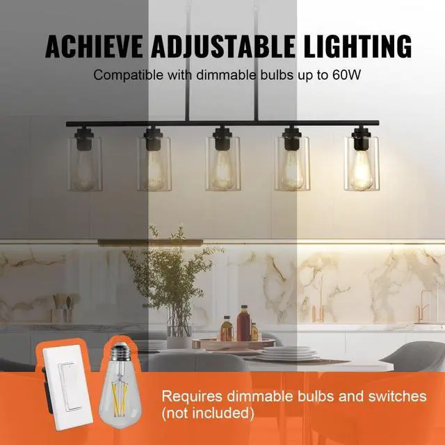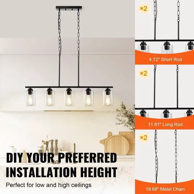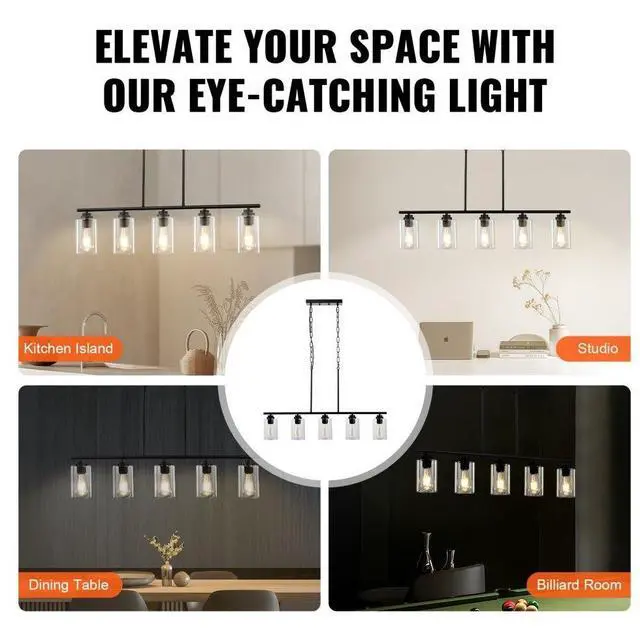 VEVOR 5-Light Kitchen Island Pendant Lights 60W Adjustable Dining Room Light E26