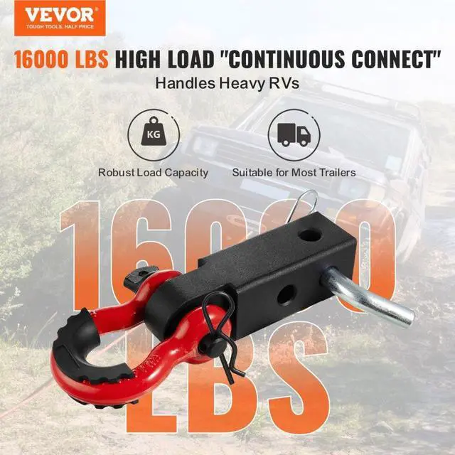 VEVOR 2" Trailer Shackle Hitch Receiver D-Ring Recovery for Truck Jeep 65900 lbs