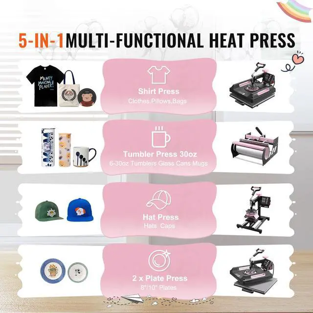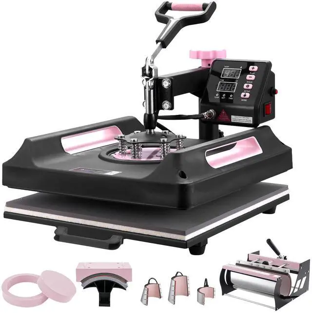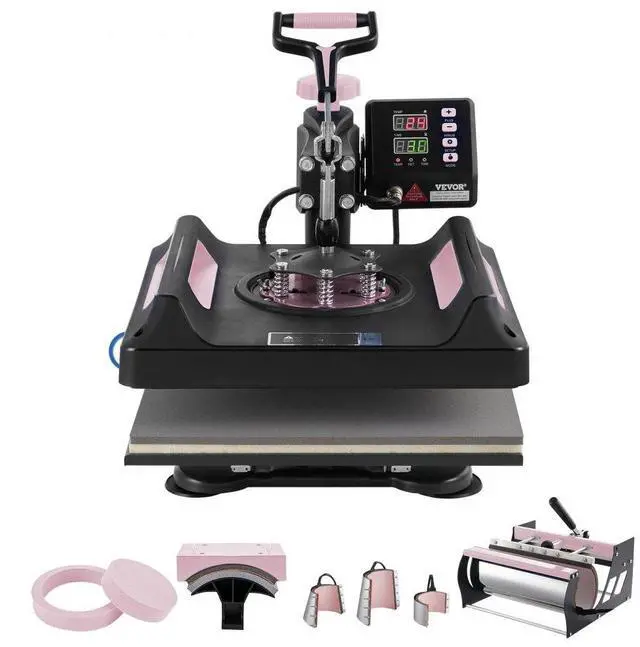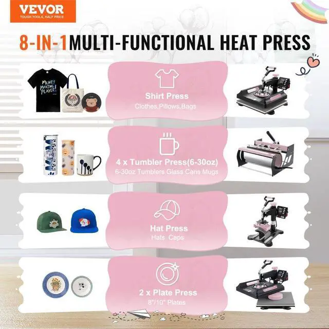 VEVOR 8 in 1 Heat Press Machine 15x15 in 30oz Tumbler Press T-Shirts Black