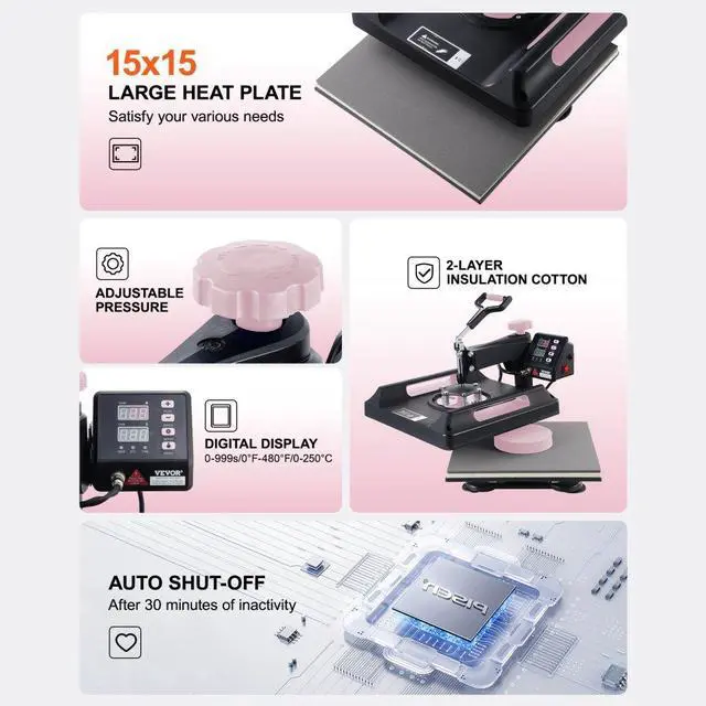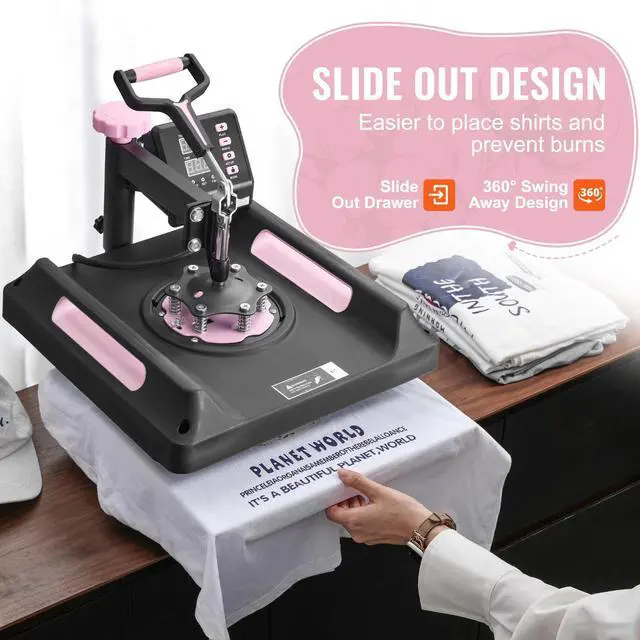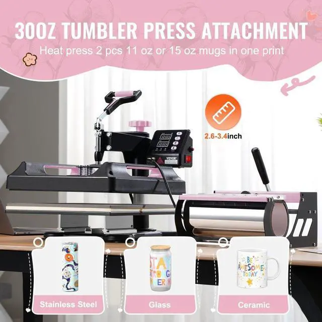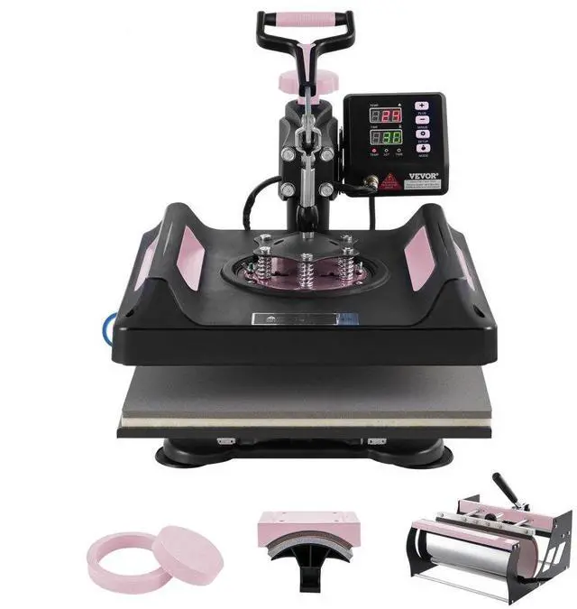 VEVOR 5 in 1 Heat Press Machine 15x15 in 30oz Tumbler Press T-Shirts Black