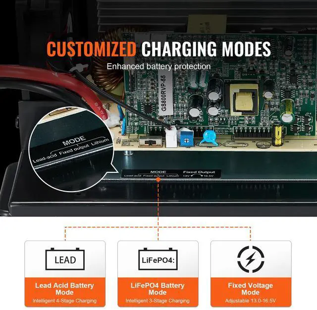 Item Model Number: GS800RVP-55,Input Voltage: 120V AC,Output Voltage: Lead Acid Battery: 12V-14.6V; Lithium Battery: 12V-14.6V; Fixed Voltage Output Mode: 13.0-16.5V,Max Output Current: 55A,Max Output Power: 798W