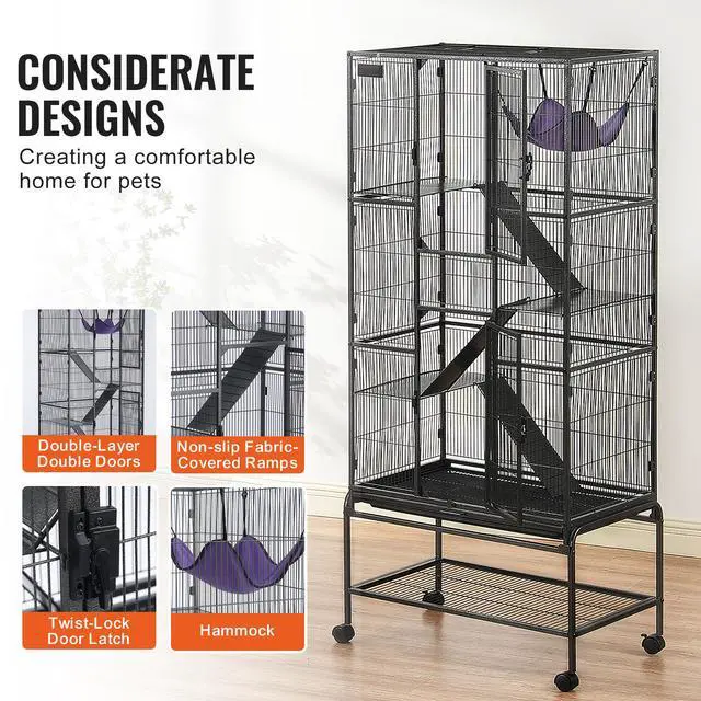 VEVOR 69" Metal Small Animal Cage 4-Tier Rolling Ferret Cage with Tray 3 Ramps