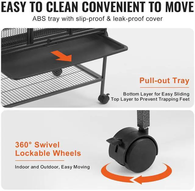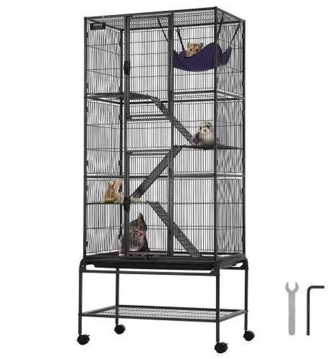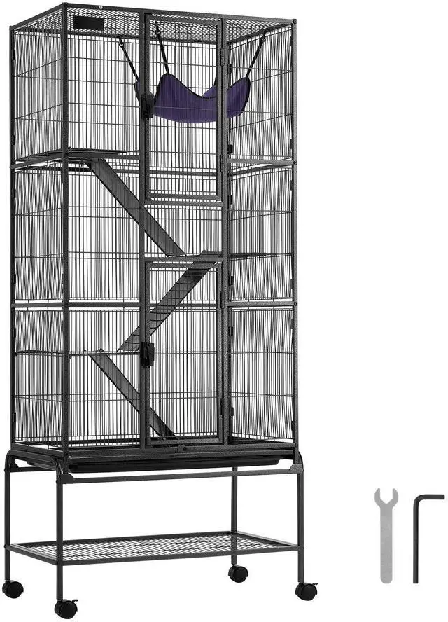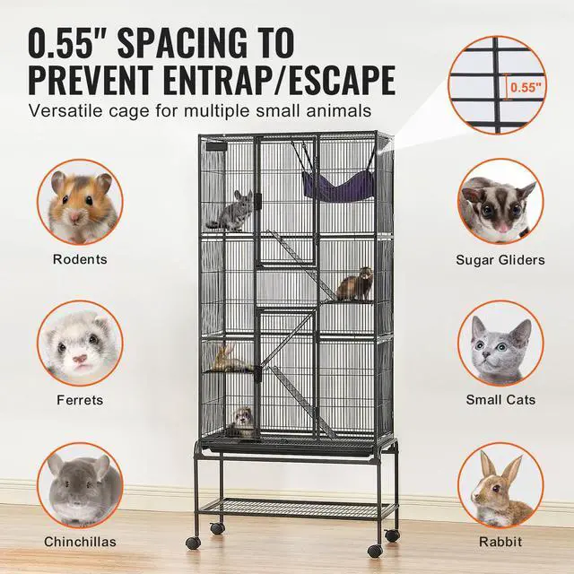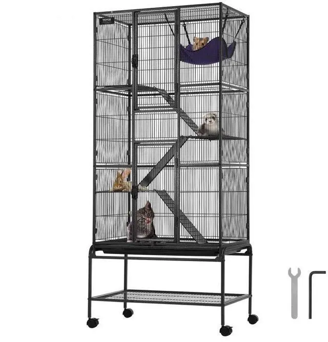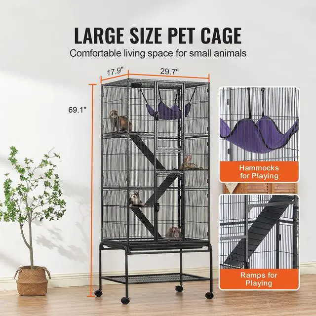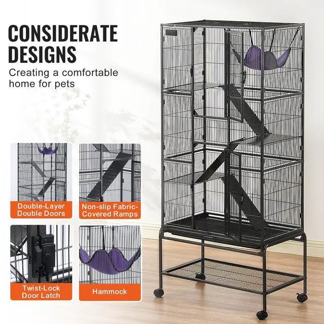 VEVOR 69" Metal Small Animal Cage 4-Tier Rolling Ferret Cage with Tray 3 Ramps