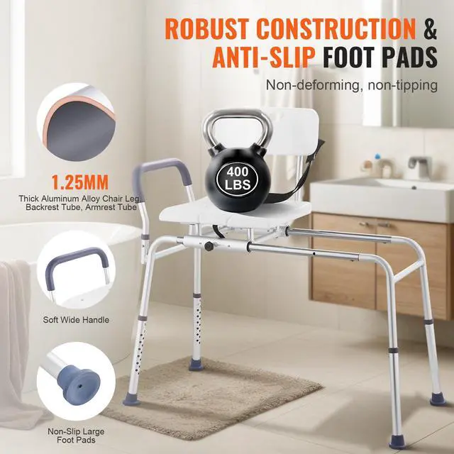 VEVOR Sliding Tub Transfer Bench Shower Chair & Cut-Out Seat Reversible Backrest
