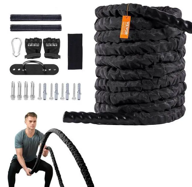 VEVOR Battle Rope 1.5" 30Ft Gym Workout Strength Training Exercise Fitness Rope