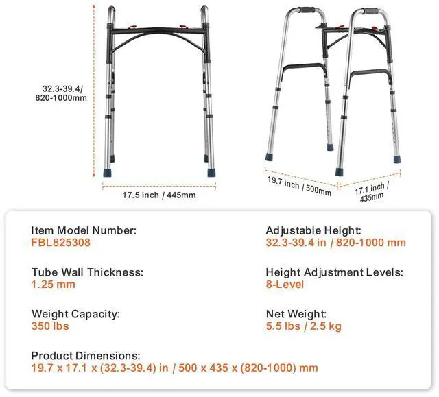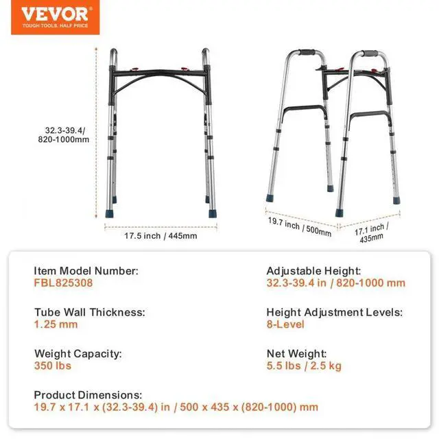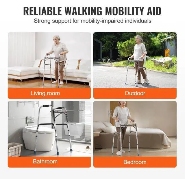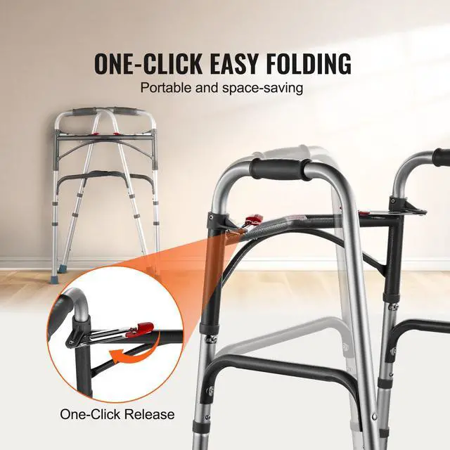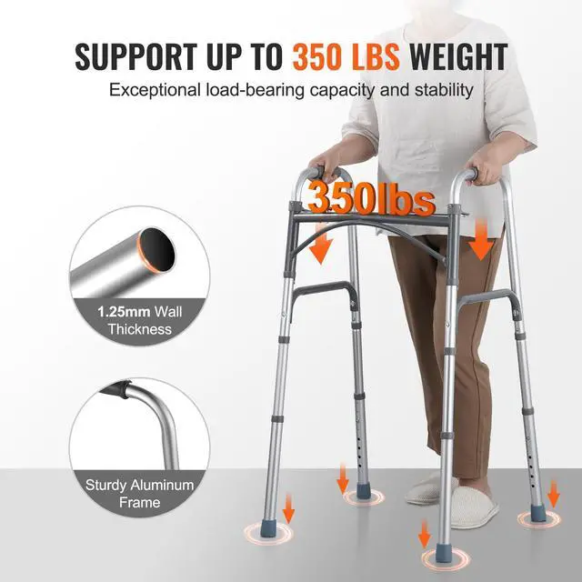 VEVOR Folding Walker Aluminum Mobility Walker Aid with Adjustable Height 350LBS