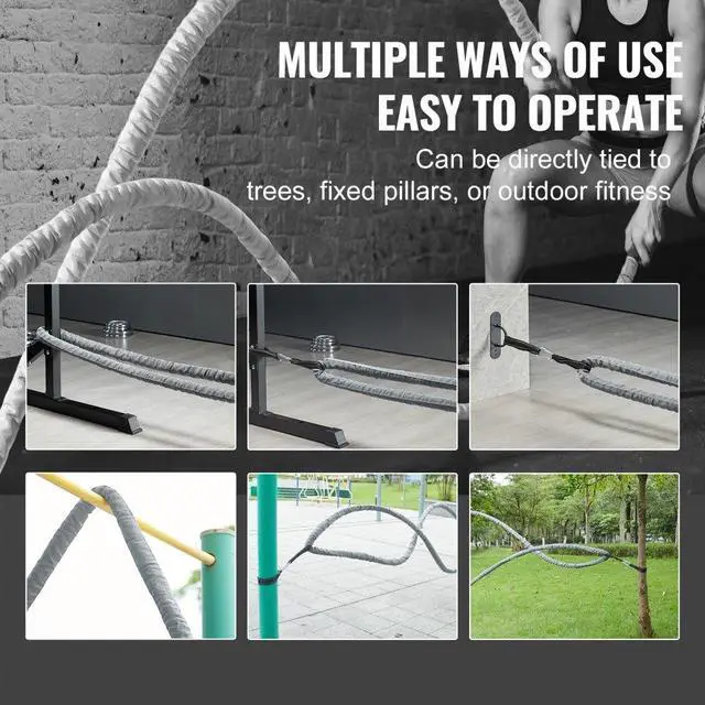 VEVOR Battle Rope 1.5" 30Ft Gym Workout Strength Training Exercise Fitness Rope
