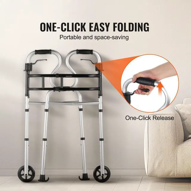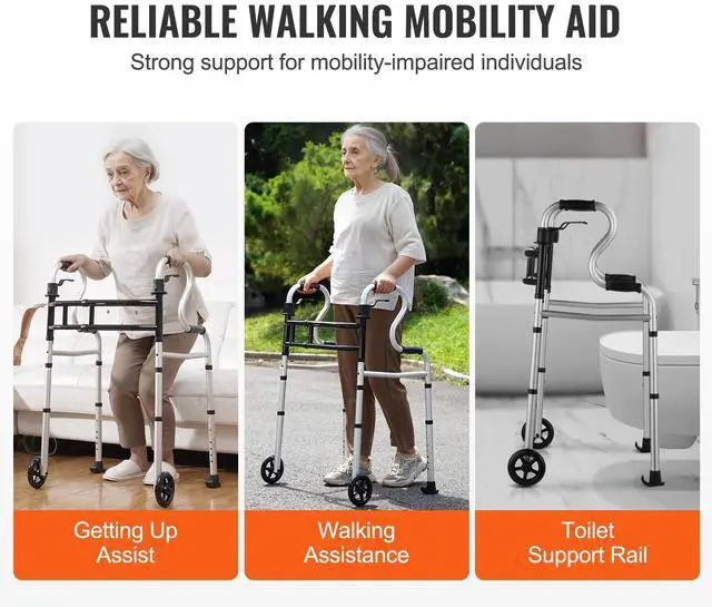 VEVOR Folding Walker Stand-Assist Folding Walkers with Adjustable Height & Width