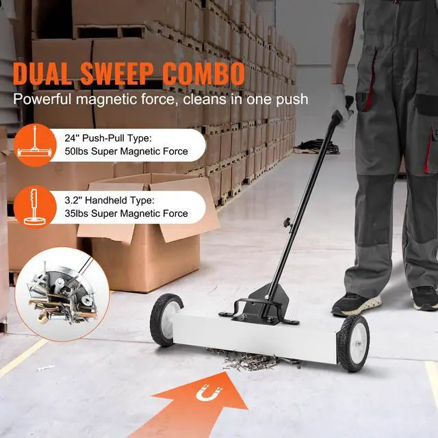 VEVOR 24-Inch Magnetic Sweeper with Wheels Telescoping Magnetic Pickup Tool