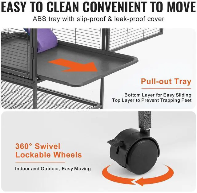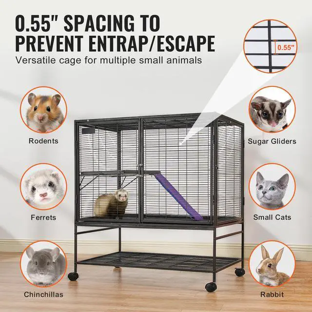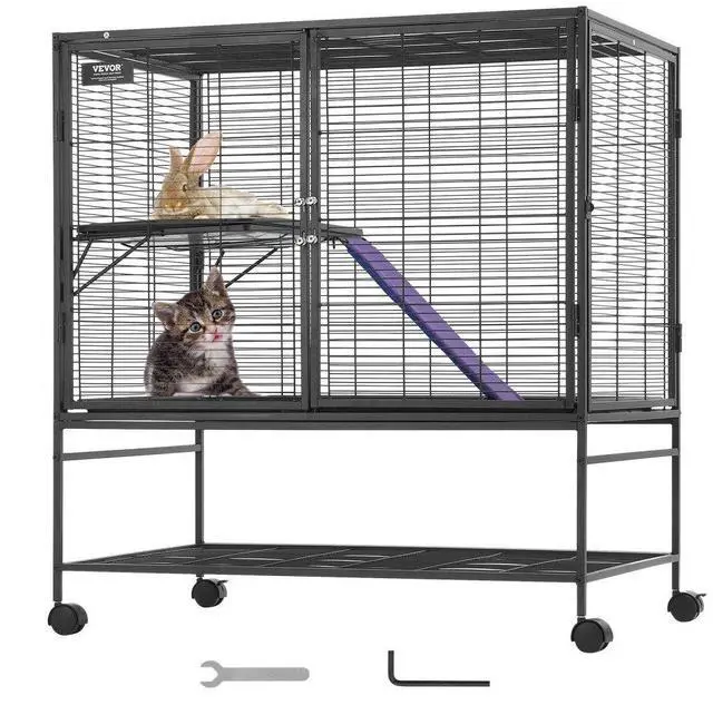VEVOR 39" Metal Small Animal Cage 2-Tier Rolling Ferret Cage with Tray A Ramp