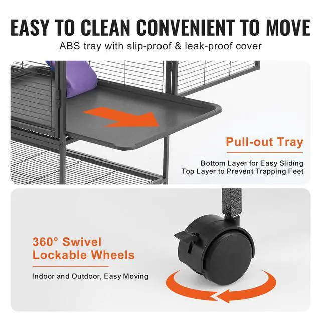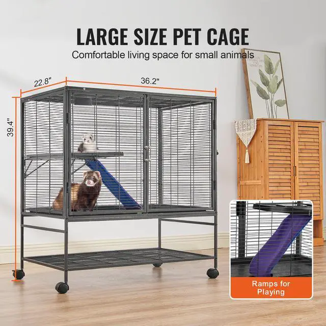 VEVOR 39" Metal Small Animal Cage 2-Tier Rolling Ferret Cage with Tray A Ramp