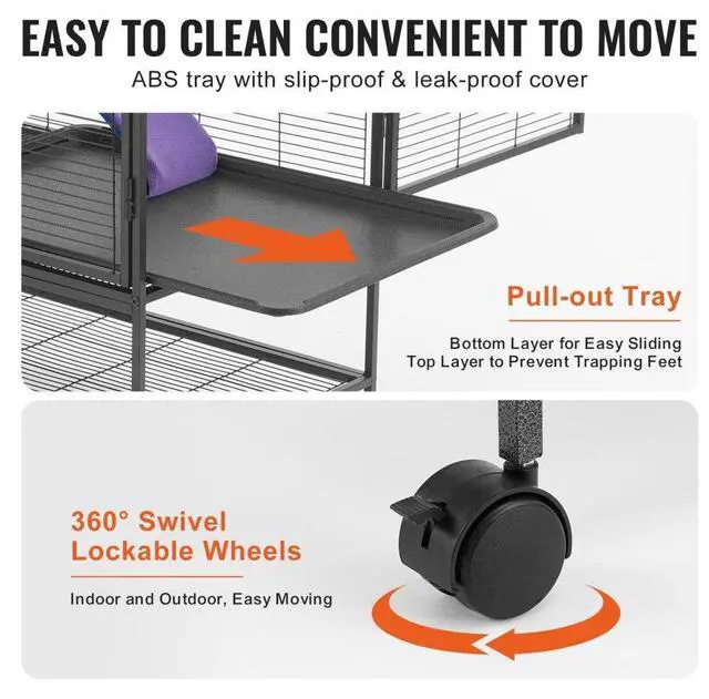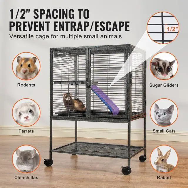 • VEVOR 34" Metal Small Animal Cage 2-Tier Rolling Ferret Cage with Tray A Ramp
