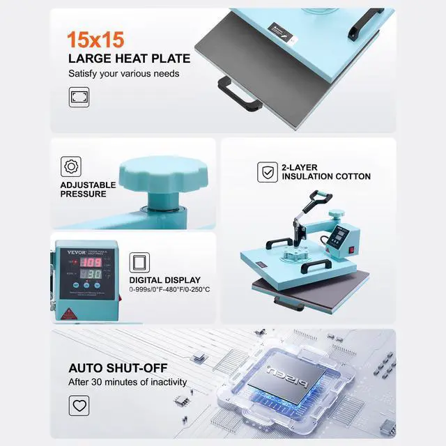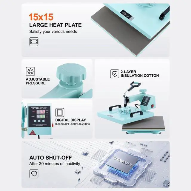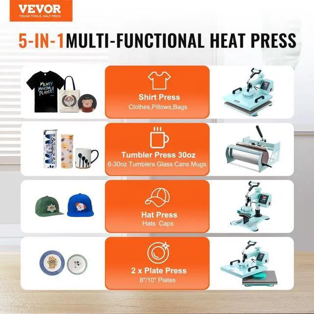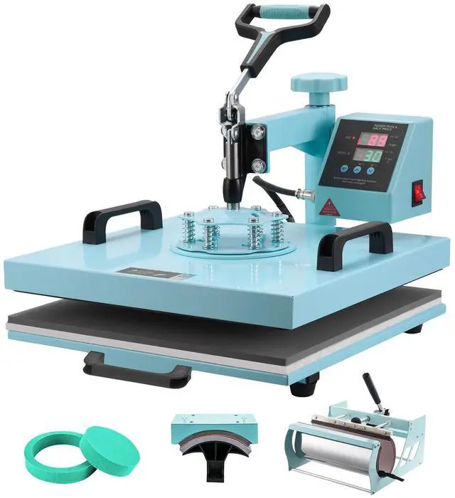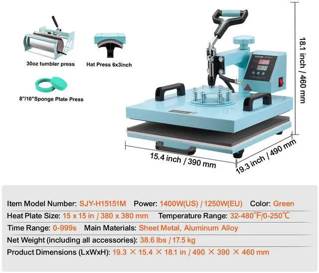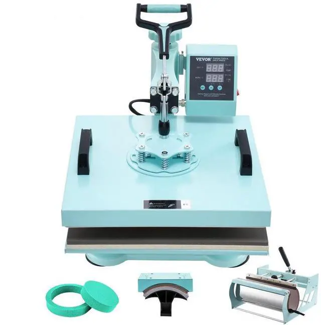 VEVOR Heat Press Machine 15x15 in 5 in 1 with 30oz Tumbler Press T-Shirts Green